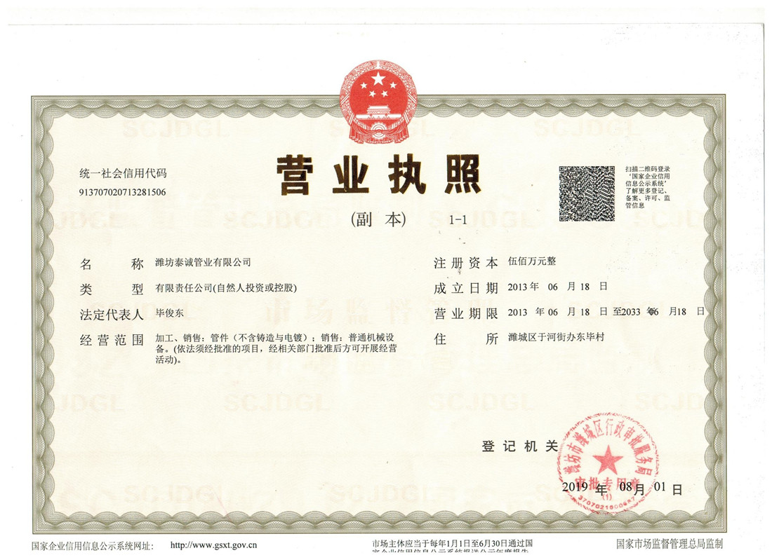 濰坊泰誠(chéng)管業(yè)有限公司坐落在舉世聞名的世界風(fēng)箏都——濰坊,是濰坊地區(qū)較早從事溝槽管件毛胚生產(chǎn)的廠(chǎng)家之一,公司是集研發(fā)、鑄造、加工、貿(mào)易為一體的現(xiàn)代股份企業(yè)。